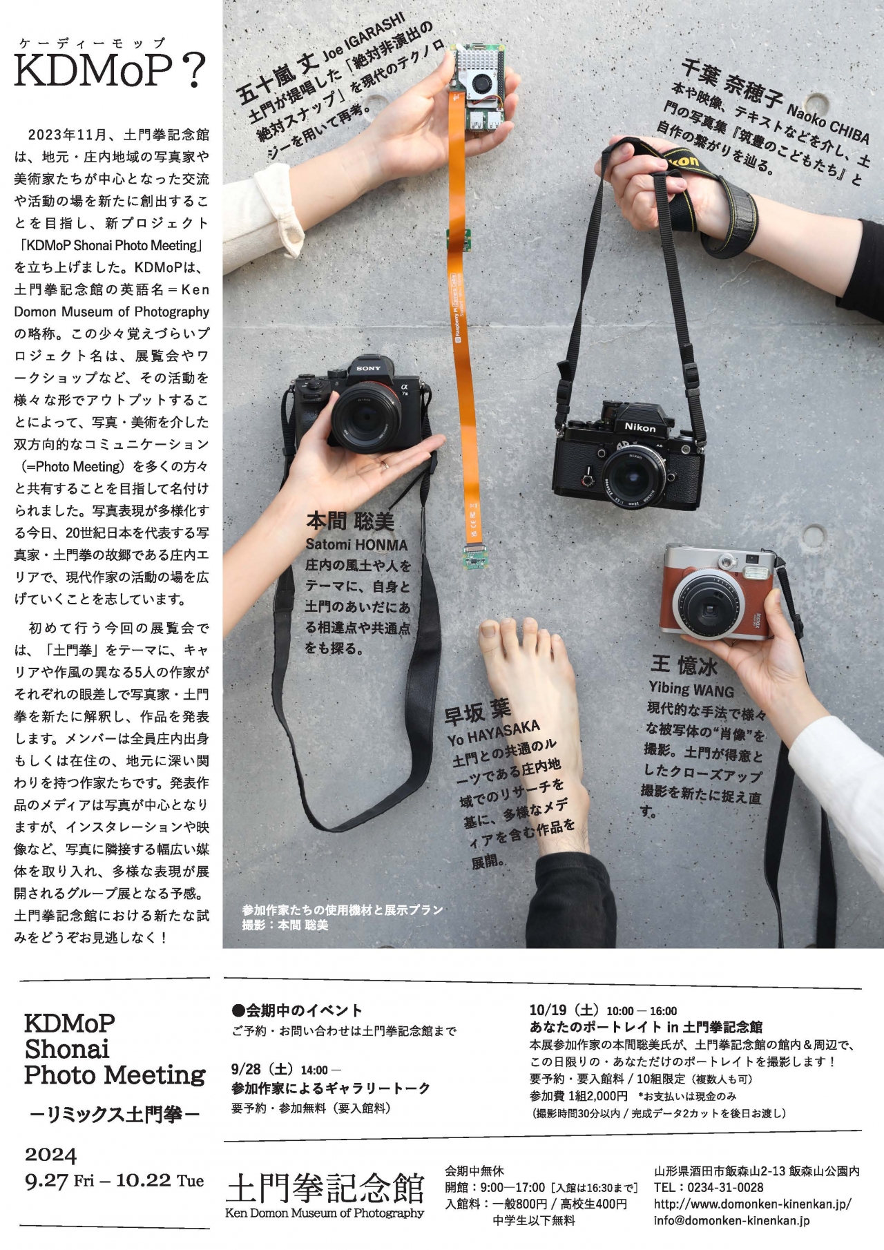 2023年11月、土門拳記念館は、地元・庄内地域の写真家や美術家たちが中心となった交流や活動の場を新たに創出することを目指し、新プロジェクト「KDMoP Shonai Photo Meeting」を立ち上げました。KDMoPは、土門拳記念館の英語名=Ken Domon Museum of Photographyの略称。この少々覚えづらいプロジェクト名は、展覧会やワークショップなど、その活動を様々な形でアウトプットすることによって、写真・美術を介した双方向的なコミュニケーション(=Photo Meeting)を多くの方々と共有することを目指して名付けられました。写真表現が多様化する今日、20世紀日本を代表する写真家・土門拳の故郷である庄内エリアで、現代作家の活動の場を広げていくことを志しています。