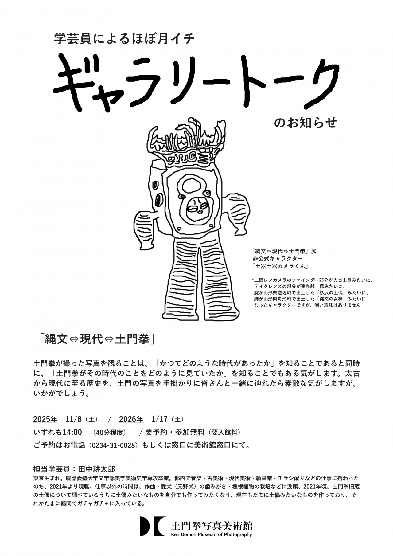 日 時 : 2025年11月8日(土)・2026年1月17日(土)いずれも14:00~(40分程度)