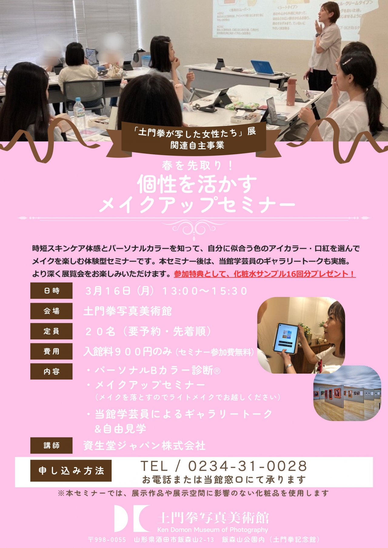 ※※本セミナーでは、展示作品や展示空間に影響のない化粧品を使用します