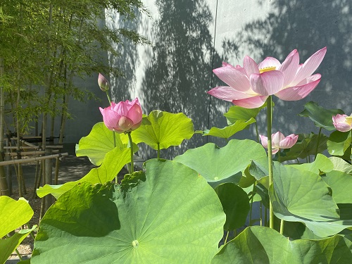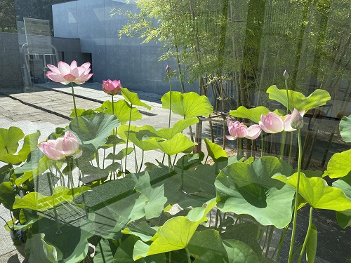 最初に咲いたハスは散り始めてきましたが、今日は新たにひとつ、つぼみが花開きました。