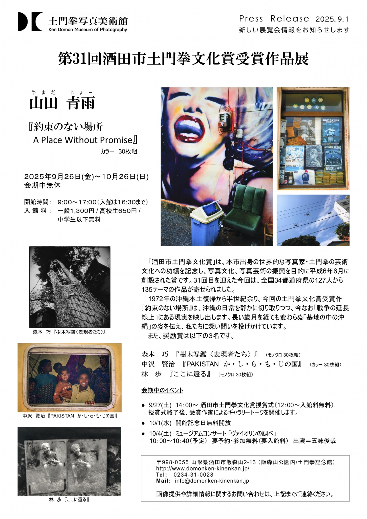 「酒田市土門拳文化賞」は、本市出身の世界的な写真家・土門拳の芸術文化への功績を記念し、写真文化、写真芸術の振興を目的に平成6年6月に創設された賞です。31回目を迎えた今回は、全国34都道府県の127人から135テーマの作品が寄せられました。